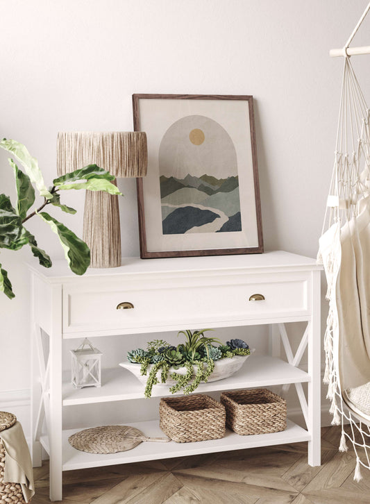 The boho style is everywhere from closets to walls, but what does the boho style actually constitute of? Think organic materials, lively colors, and nature-inspired design mixed in with a touch of Moroccan inspiration and lots (we mean lots) of plants! You could curate a free-spirited bohemian ambiance with eclectic gallery walls and contrasting textures all-around or opt for a minimalist or modern boho alternative with subtle touches of bohemian art prints here and there to warm up your space. Boho art prints often evoke elements of nature such as the sun, mountains and animals. And while you're browsing through our boho posters, don’t sleep on boho wallpaper! Botanical patterns and wallpaper designs inspired by natural fabric are a fabulous way to infuse your space with a joyful bohemian aesthetic.