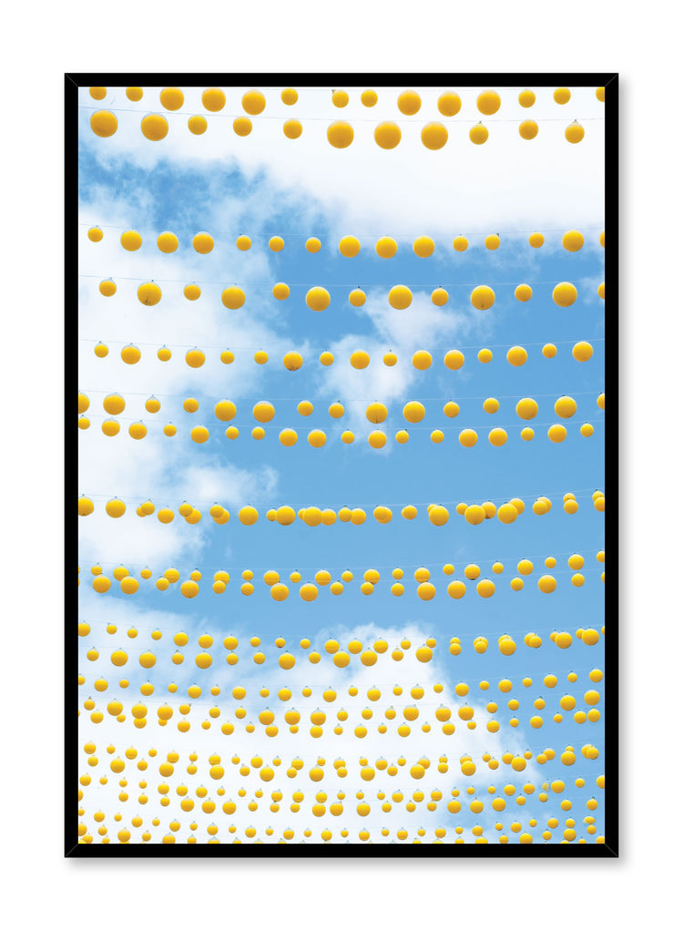 Bright hanging balls, dangling amidst the bright blue sky, will liven up your walls.