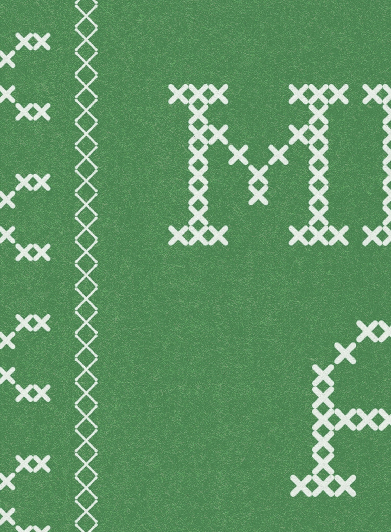 The design's simplicity is its strength, with the crisp white stitching standing out against the rich green. The symmetrical border adds a touch of structure, while the overall aesthetic evokes a sense of warmth and holiday cheer. This canvas captures the spirit of the season with its understated elegance and nostalgic nod to classic holiday crafts.