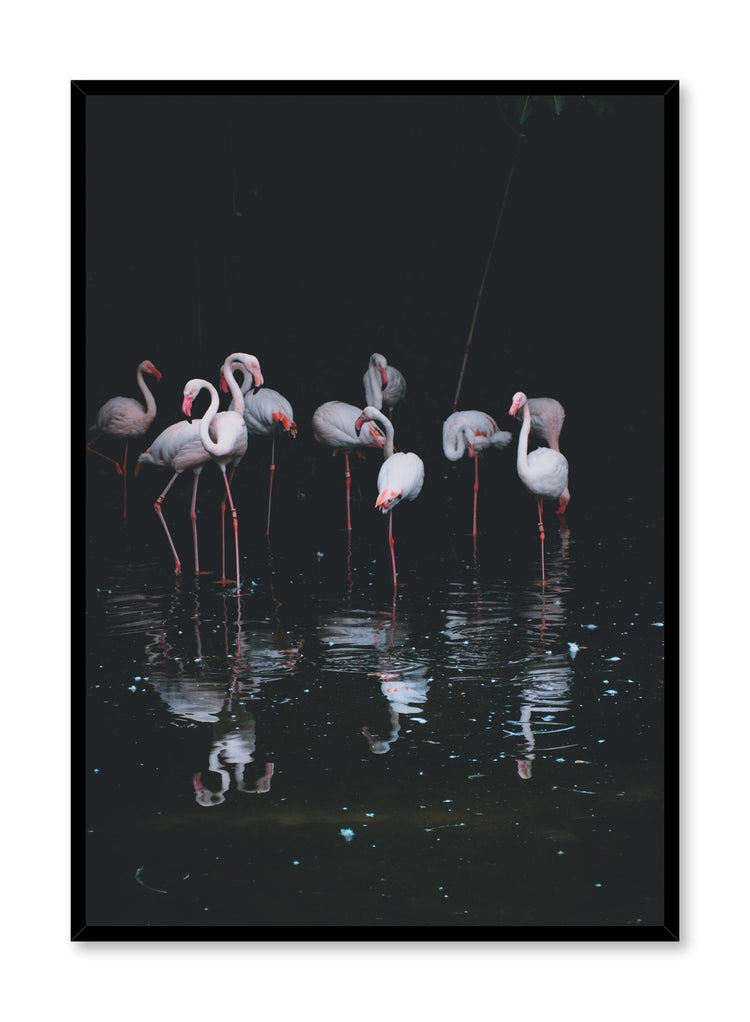 Pink silhouettes at dusk, mirrored in water. Poetry on your wall.