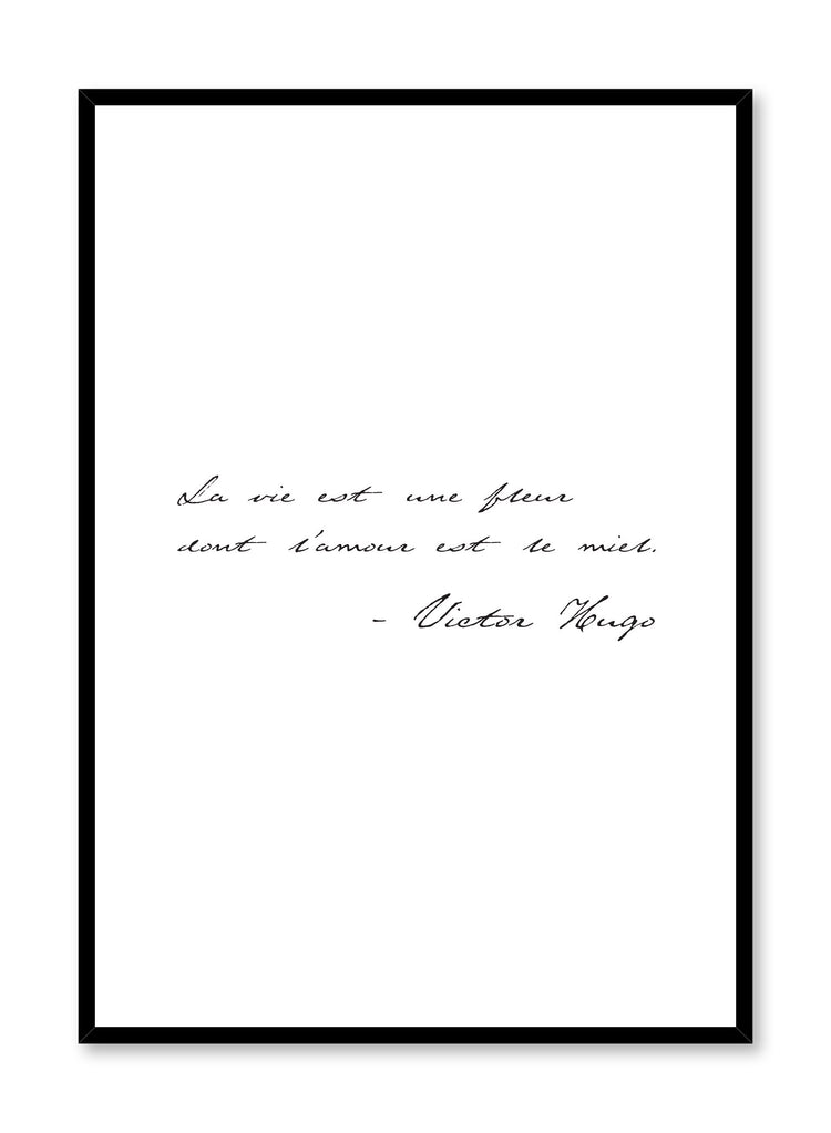 Romantics rejoice over this incredibly moving inspirational quote poster, in black and white, from Victor Hugo - "Life is a flower of which love is the honey.”