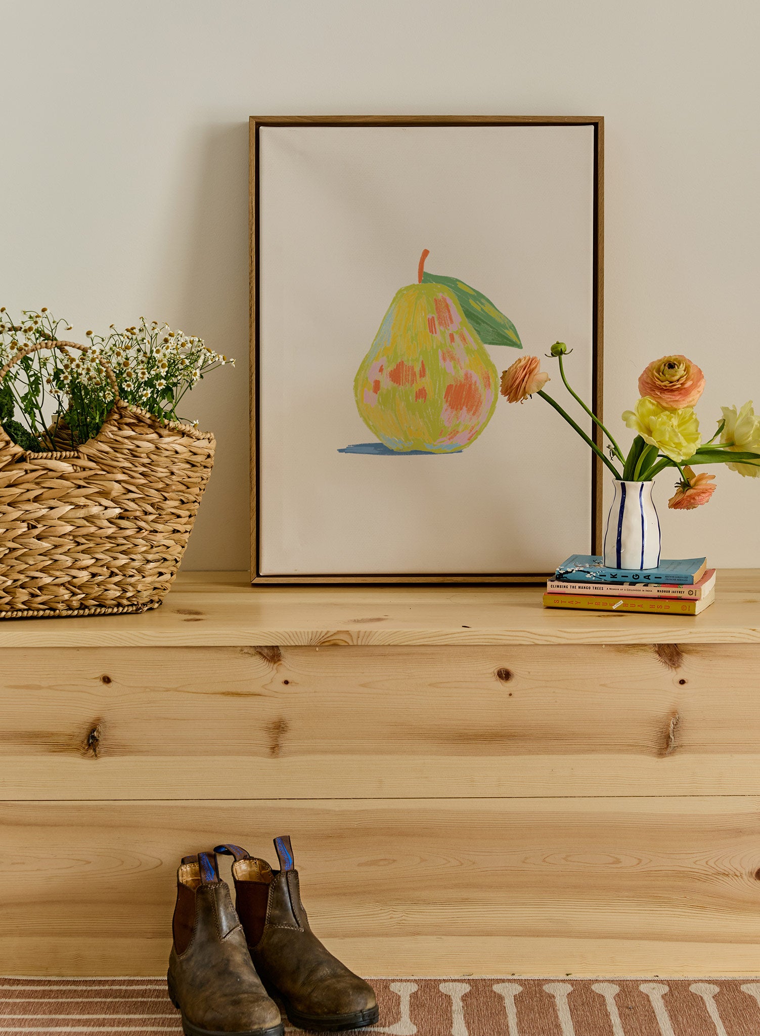 A perfect fit for kitchens, dining spaces, or anywhere that could use a splash of color, this artwork pairs beautifully with eclectic decor, fruit-themed prints, or rustic textures. Whether displayed solo or in a gallery wall, this pear brings an artistic twist to everyday simplicity.
