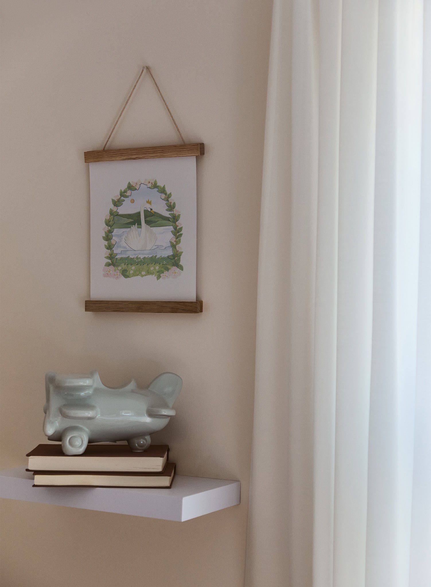 Perfect for a bedroom or a serene home office, this print adds a touch of storybook magic to any space. Pair it with a simple wooden frame to enhance its natural elements, or opt for a sleek black frame for a modern contrast. Complement the scene with soft linens, ceramic vases, and warm lighting to create a cosy, inviting atmosphere that encourages relaxation and reflection.