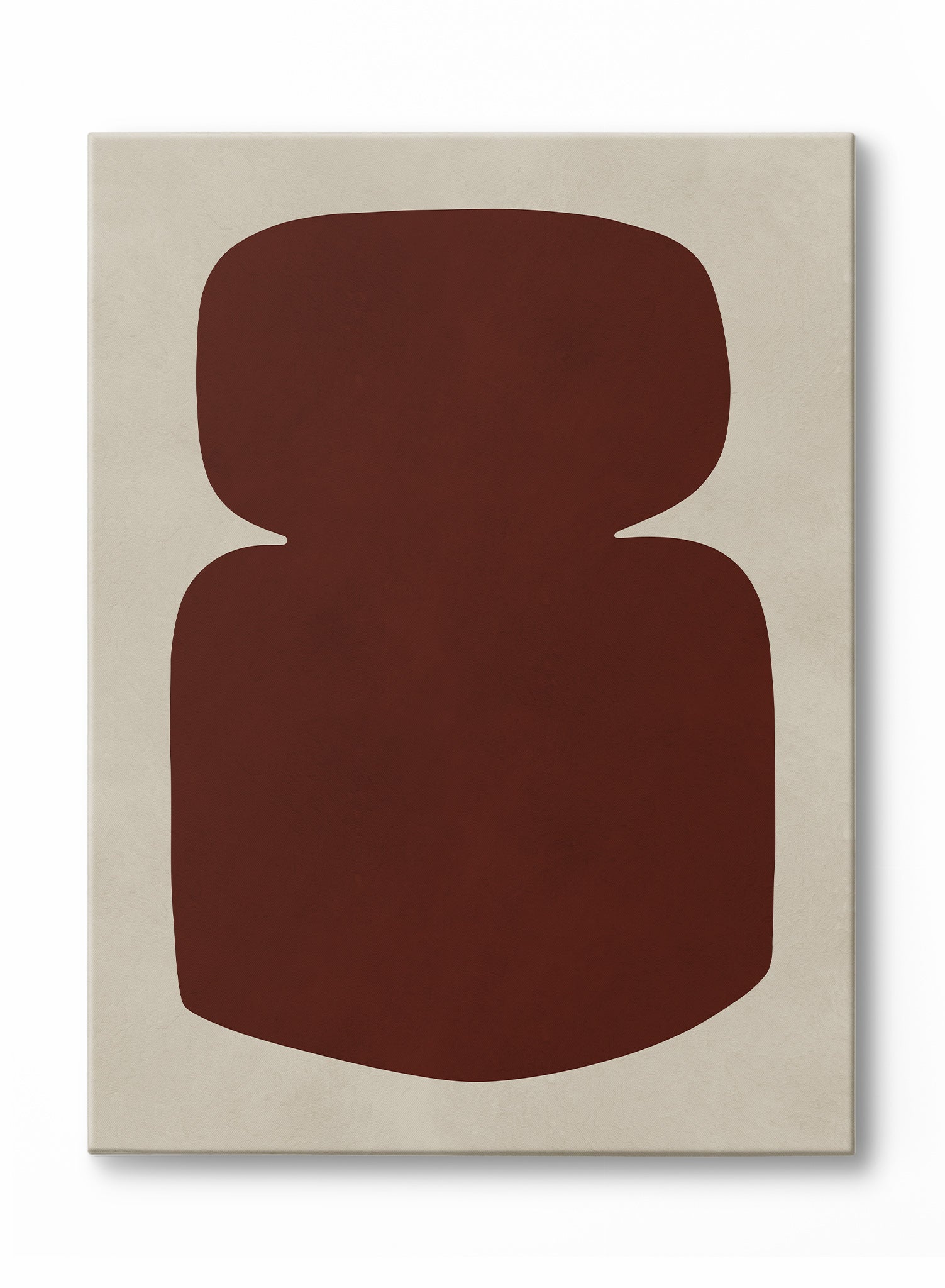 This rich, earthy print features two substantial rounded forms in deep burgundy against a neutral backdrop. Curated for Keefer House, the composition reflects an Asian minimalism influence through its confident use of negative space and organic silhouettes that echo the fluid rhythm of calligraphic brushstrokes.