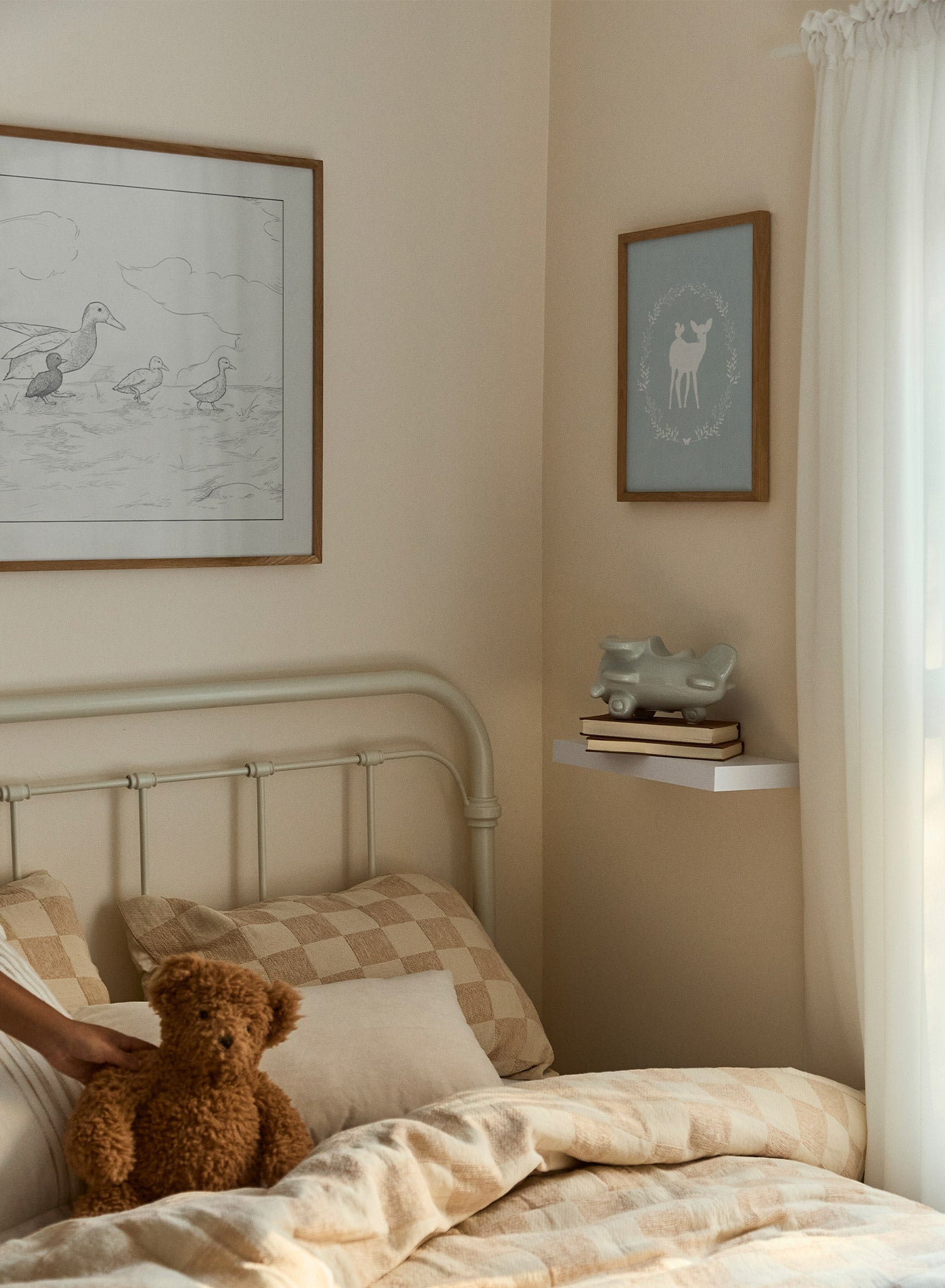 Perfect for a nursery or children’s space, this print blends seamlessly with soft neutral palettes and woodland-themed decor, adding a touch of whimsy to any setting.